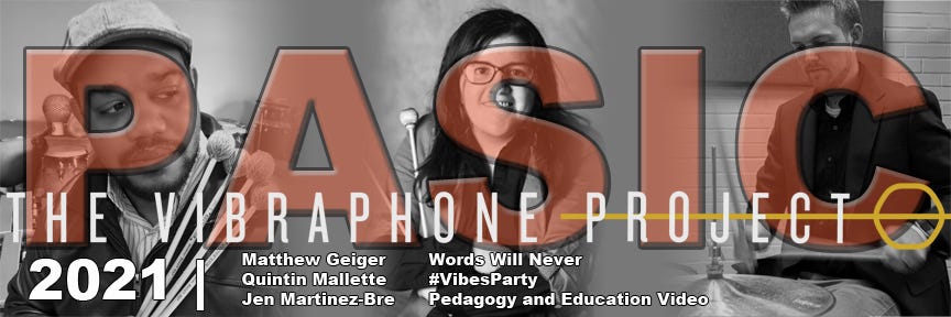 Greetings and welcome to the PASIC 2021 preview of the Vibraphone Project Newsletter. In this edition we have exciting news to share about VPI members and vibraphone events at PASIC, an upcoming video from our Pedagogy and Education Committee, and our upcoming fundraiser #VibesParty.