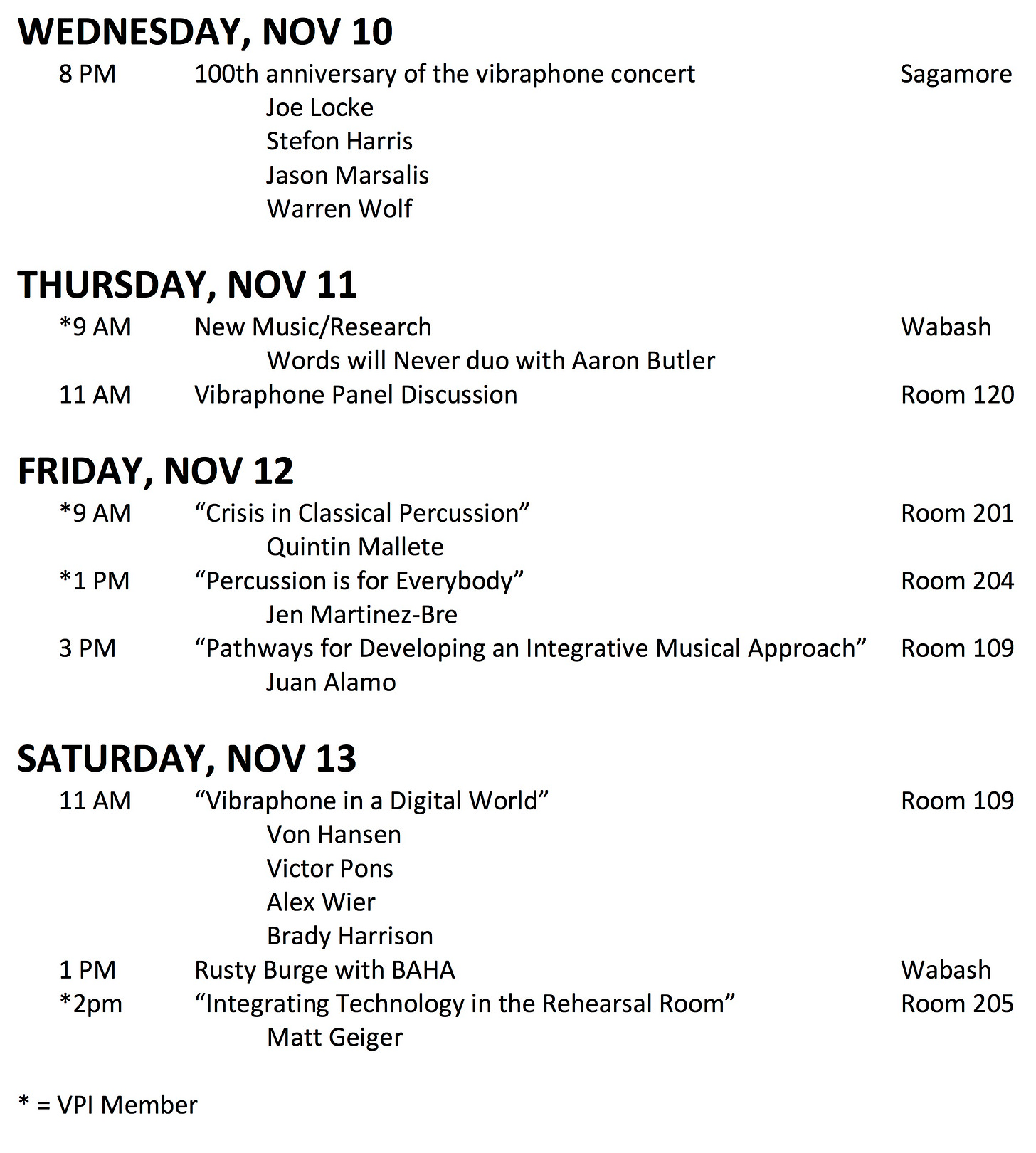 We are excited to have a consistent presence at PASIC this year! Come stop by booth 806 at PASIC to talk all things vibraphone! Brian Graiser, Gloria Yehilevsky, and Jen Martinez-Bre will be there regularly. There will be other appearances by additional VPI members, as well. At the booth, we will be hosting a GIVEAWAY of materials including percussion products and sheet music! To enter the giveaway, you will need to stop by the booth and signup for the newsletter and/or social media platforms. There will be iPads on site, if you prefer to use ours. The giveaway will take place on Saturday morning/afternoon, so make sure to sign up beforehand! Besides the GIVEAWAY we will be handing out flyers, educational materials, as well as offering ways for individuals to give donations to our 501(c)(3) non-profit and help project the vibraphone into the next 100 years. We look forward to meeting you!